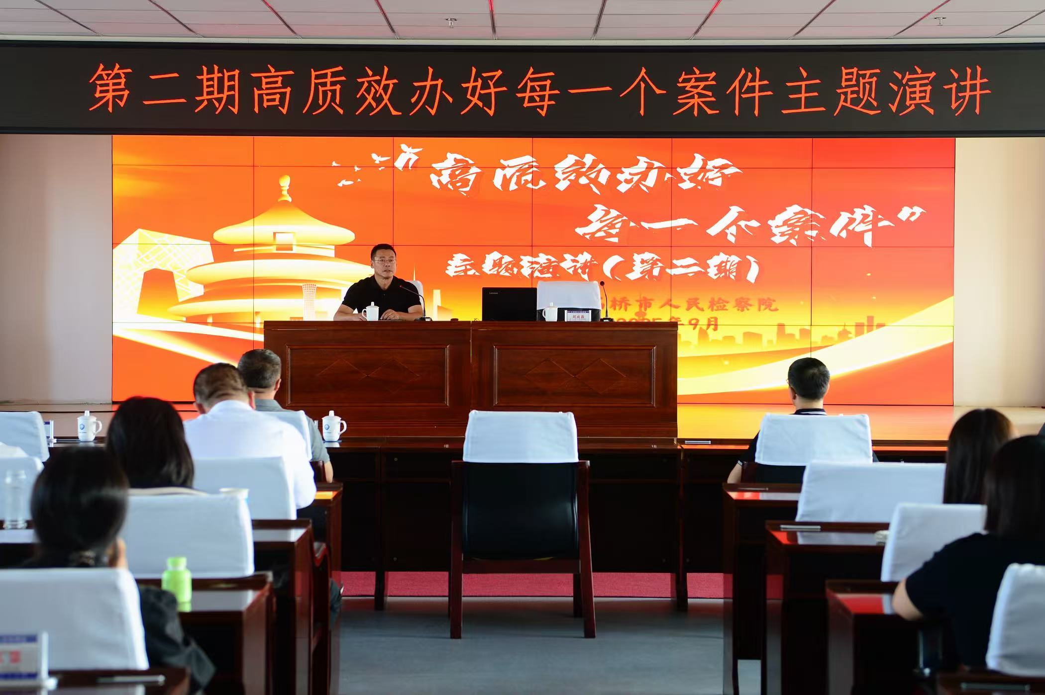 为进一步加强检察干警对“高质效办好每一个案件”的理解与践行,提振检察干警干事创业的精神与热情,持续提升检察队伍专业素能,9月28日,大石桥市人民检察院举办第二期“检察工作大家谈”活动,本次活动以“高质效办好每一个案件”开展主题演讲,党组副书记、分管日常工作的副检察长孙卫主持活动,党组成员、副检察长刘成鑫进行讲课。全院检察干警在七楼报告厅参加活动。